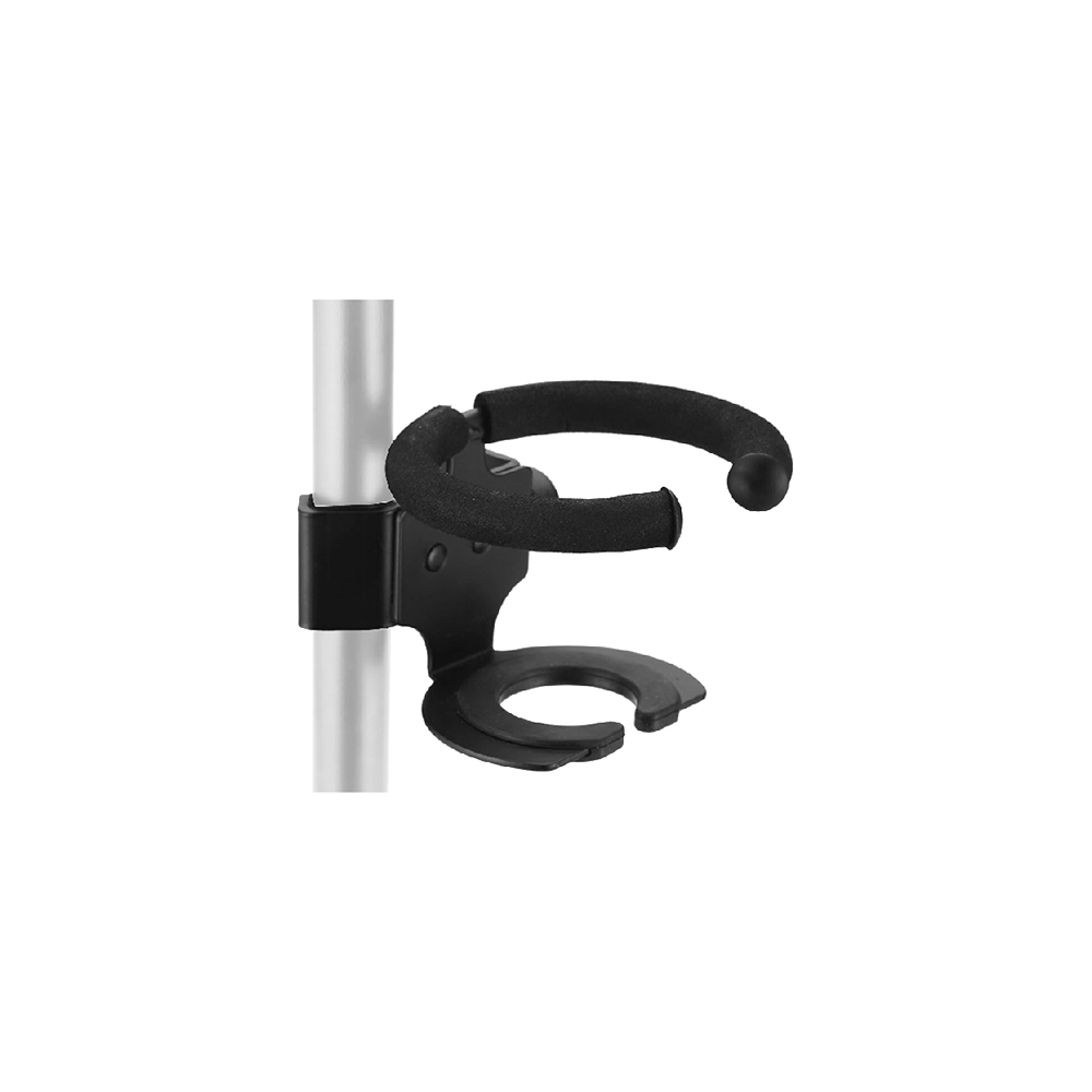 1. 支架上的V型夾具可夾持直徑最大為38mm的桿件,大圈部分可放置合適尺寸的礦泉水瓶、保溫杯及飲料杯;反向夾持時,可放置適配尺寸的麥克風(fēng),滿足多種使用需求。