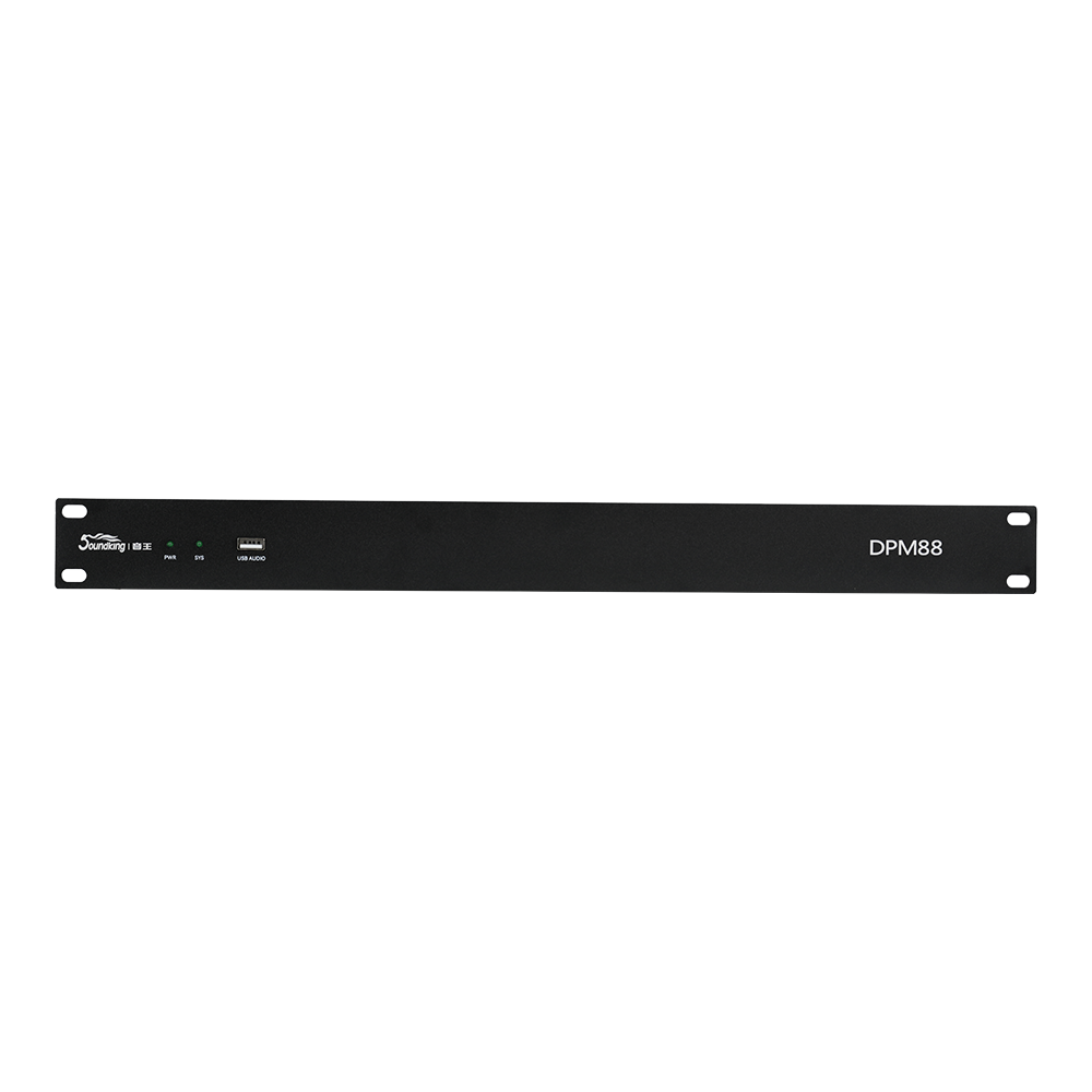 7. 32bit dsp處理器、支持48KHz采樣率、24-bit數(shù)模轉(zhuǎn)換;支持AFC(反饋抑制)、AEC(回聲消除)、ANC(噪聲消除)、AGC(自動增益)、AUTO MIX(自動混音)、MATRIX MIX(矩陣混音)、噪聲門、PEQ(參量均衡器)、延時器、FIR濾波器、高低通分頻、壓縮器、限幅器功能;