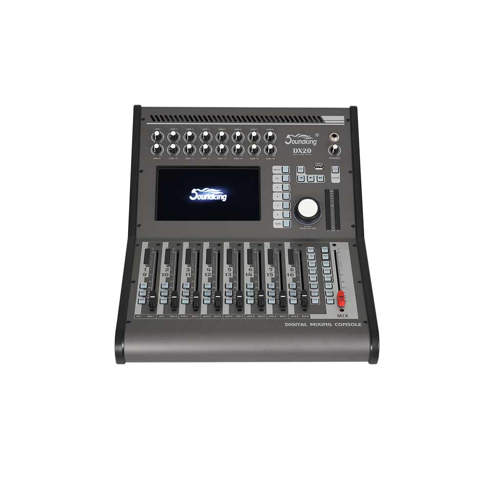 1. DX20-USB數(shù)字調(diào)音臺是音王進入數(shù)字調(diào)音臺市場的全功能緊湊型數(shù)字調(diào)音臺。融合了現(xiàn)代數(shù)字調(diào)音臺和傳統(tǒng)調(diào)音臺操作相融合的全新理念。