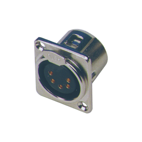 五芯卡儂母插座外殼采用高強度鋅合金材質(zhì)堅固耐用, 鍍銀觸點保證了信號穩(wěn)定傳輸。標準的D型法蘭通用尺寸適合工程安裝。