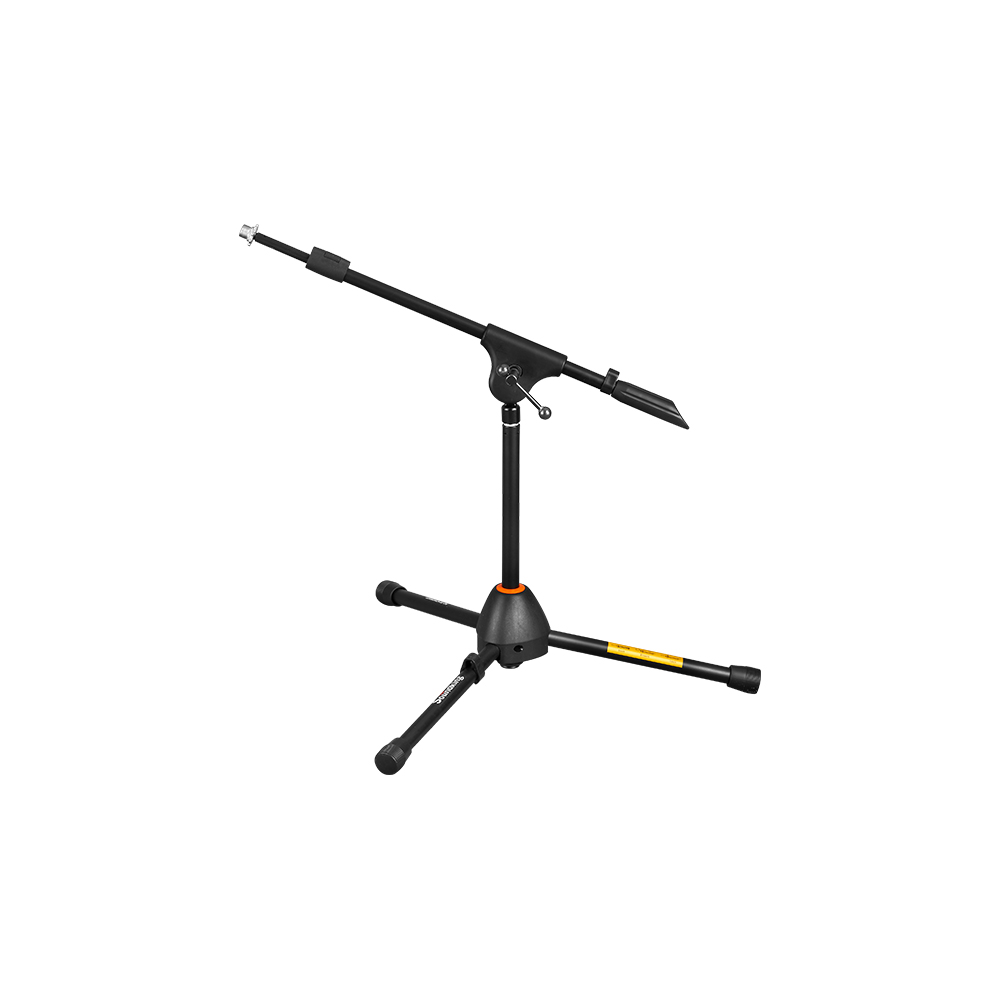 短款麥克風(fēng)支架,底座部分采用無旋鈕方式鎖緊,可通過腳管的折疊角度控制將底座鎖緊。
