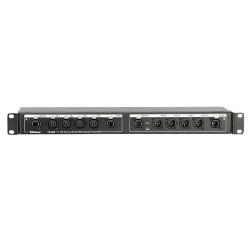 標(biāo)準(zhǔn)19”四通道音頻傳輸盒具有獨(dú)立的四個(gè)XLR-F輸入和四個(gè)XLR-M輸出以及每組具有兩個(gè)并聯(lián)連接的RJ45型網(wǎng)絡(luò)連接器。使用一根網(wǎng)線即可以在100m以內(nèi)傳輸四路模擬音頻信號(hào)或AES/EBU數(shù)字音頻信號(hào)(注意網(wǎng)線必須是屏蔽線才能通過幻象電源),輸出設(shè)有接地開關(guān)能幫助消除由于接地回路引起的嗡嗡聲,除了傳輸音頻信號(hào),也可傳輸燈光信號(hào)。
